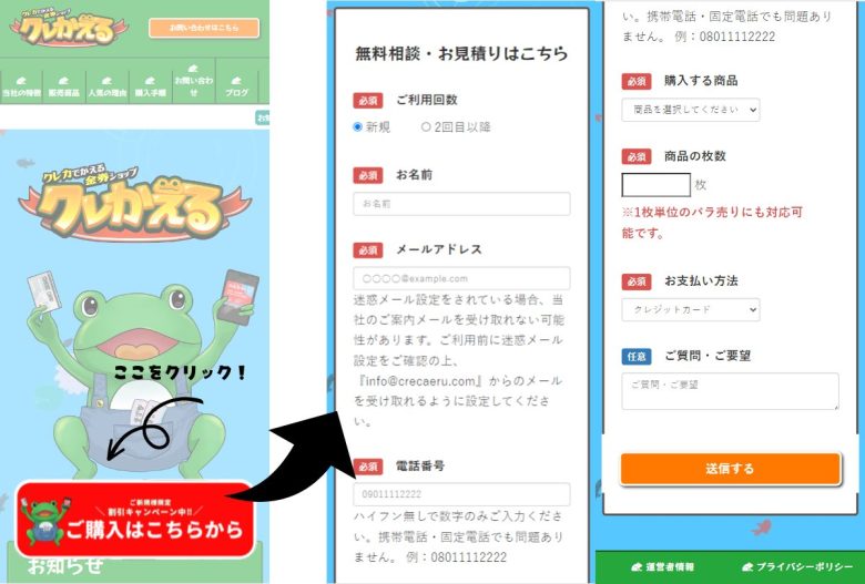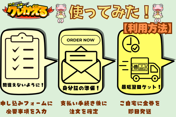 クレかえるでは金券の購入手続きが全てWEBで完結します。