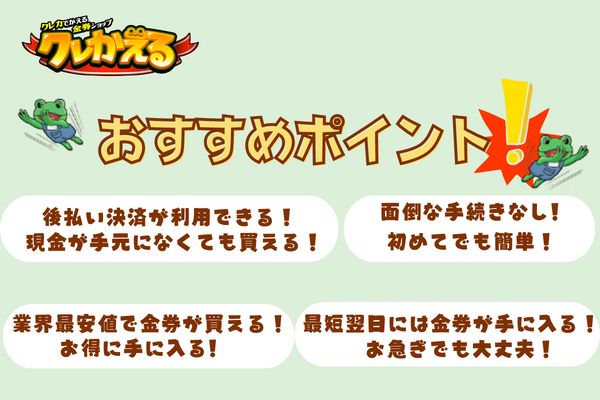 ぜひクレかえるで後払い決済を利用してお得&スピーディーに金券を手に入れてみませんか?