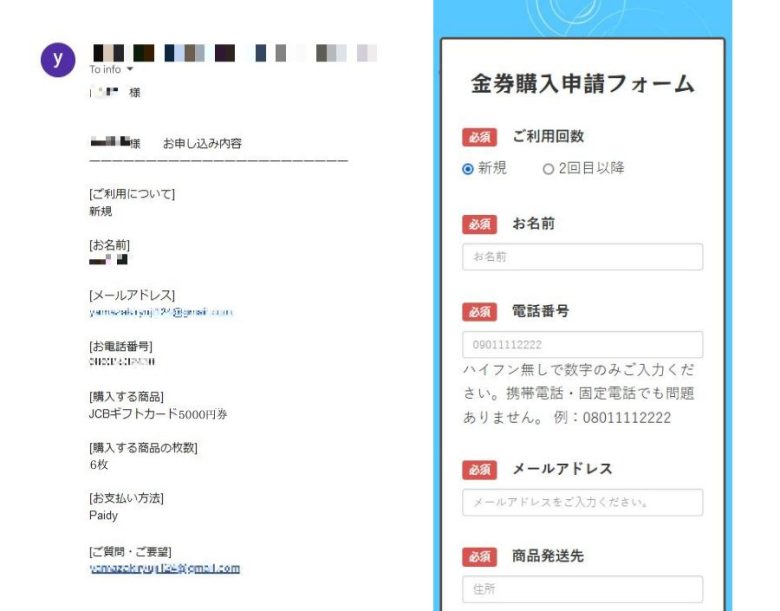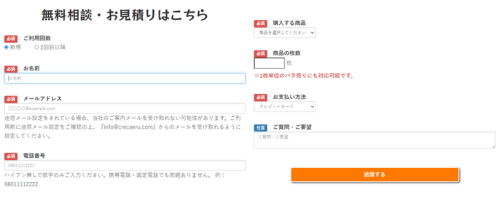 必要事項を入力し送信すると確認のメールが届くので、購入申請フォームを送ります。