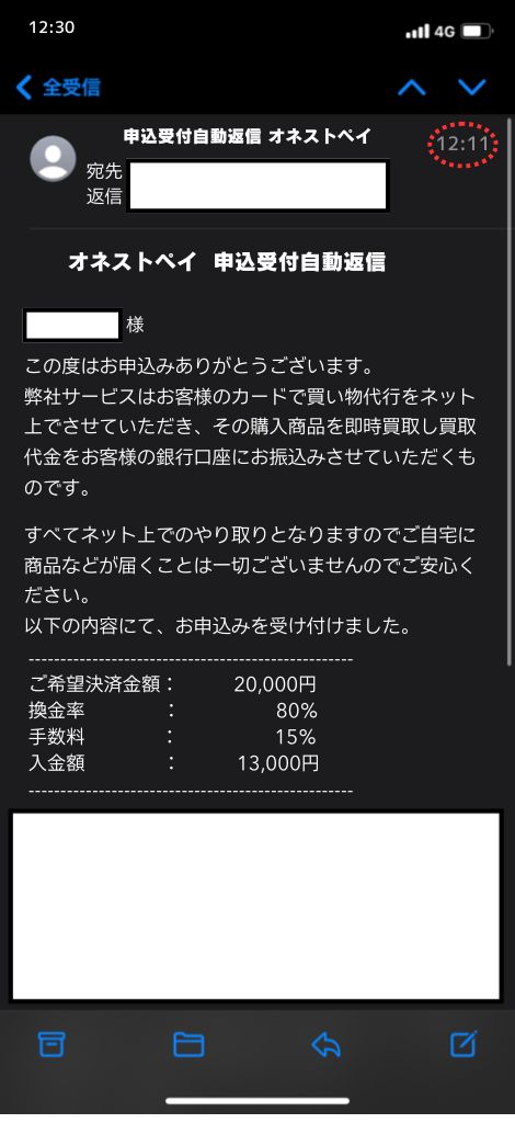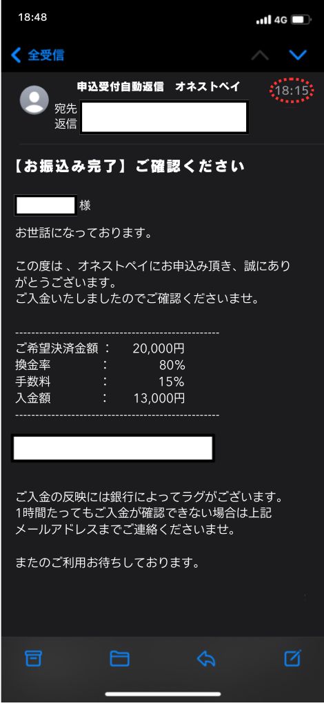 実際に、オネストペイで現金化を体験した結果をご紹介します。