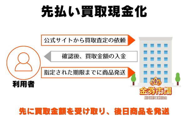 通常の買取とは違い、商品の発送前に買取金額を受け取れるので、即日現金化が行えます。