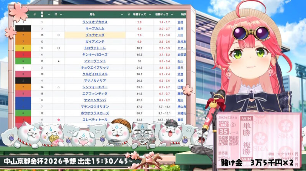人気VTuberグループ・ホロライブ所属のさくらみこさんが、2026年1月4日の競馬配信をめぐりネット上で大きな話題となっています。